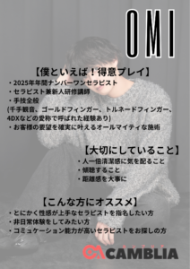 一度オミと触れ合えばわかる、安定感のある施術と、期待を裏切らない対応力。